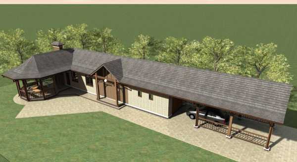 Проект № 3. Баня с беседкой под удлиненной двухскатной крышей