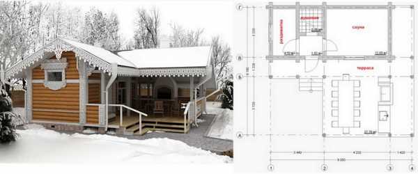 Баня с маленькой беседкой