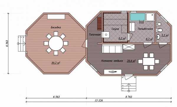 Проект № 2. Баня с шестигранной беседкой