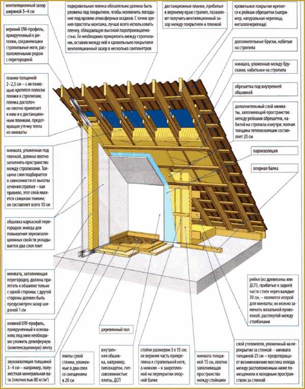 Подробная схема теплоизоляции мансарды