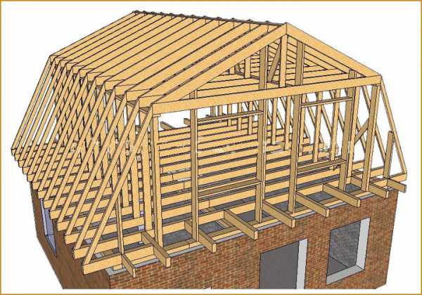 Как правило, проект мансардной крыши предполагает использование для создания стропильных ферм деревянных брусьев. Строится стропильная конструкция такой крыши с устройством двух ломаных скатов.
