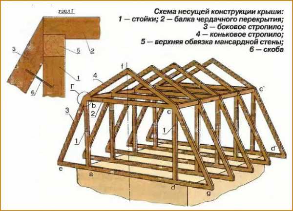 Подробная схема конструкции мансарды