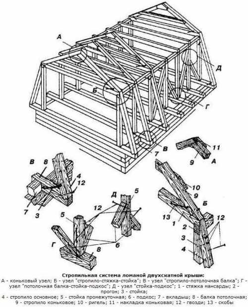 Стропила для крыши своими руками, идущие ниже угла перегиба, располагаются под более крутым уклоном, чем элементы, расположенные выше названной точки.