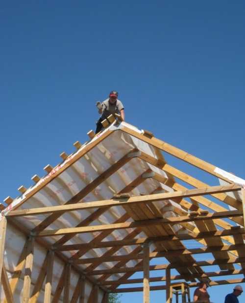 При выполнении монтажных работ должна соблюдаться регламентированная строительными нормами технология строительства мансардной крыши. Первым этапом строительства является установка конструкции из стропил.