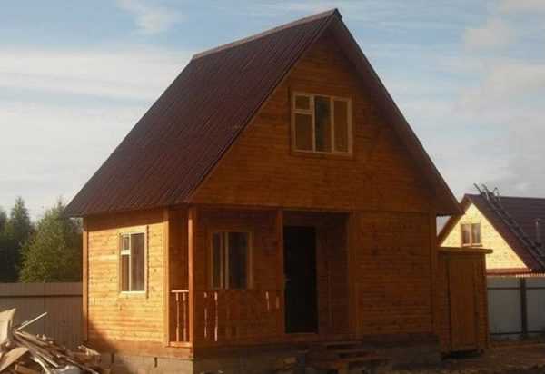 Для формирования каркаса понадобится брус 100*150 мм. Их него делается обвязка и устанавливаются лаги пола. Для крыши используют брус 150*40 мм для потолочного перекрытия. Стропильная система укладывается из обрезной доски. Для этого подходит доска с размером 100*50 мм. Материал для обшивки и кровли выбирается в зависимости от личных предпочтений и климатических условий.