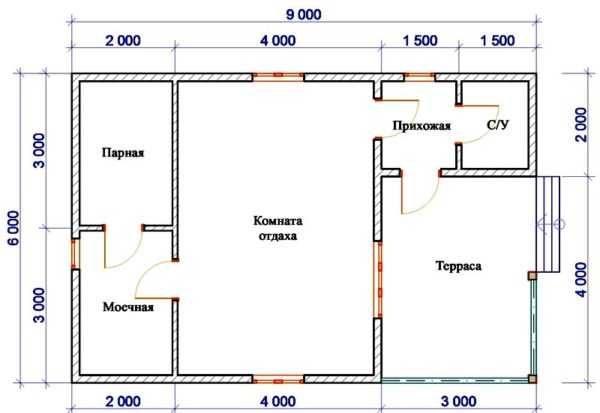 Планировка бани 4*5 м
