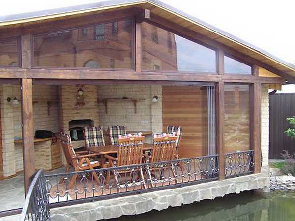 - Беседка с безрамным остеклением, расположенная вместе с баней;