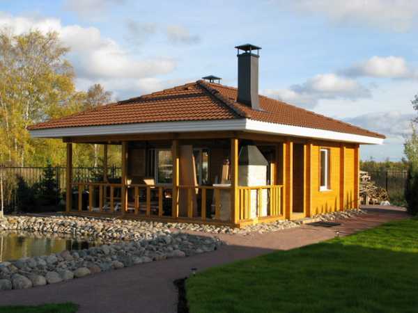 - традиционная деревянная баня с беседкой (проект бани с беседкой из профилированного бруса или оцилиндрованного бревна) – всегда стильный внешний вид, отличные тепло- и шумоизоляционные свойства, 100%-ная экологичность, простота строительства.
