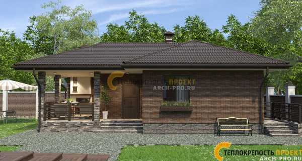 Проект бани с террасой, Проект бани из кирпича с верандой комнатой