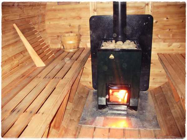 После того, как сооружение бани завершено, можно переходить к отделочным работам. Первый этап таких работ внутри предусматривает установку железной или каменной печи. Эта непростая конструкция в идеале должна иметь фундамент из бетона или шамотного кирпича. С точки зрения пожаробезопасности не лишним будет положить на него асбестовый картон, а сверху – лист стали. Печь должна располагаться на расстоянии не менее 50 см от ближайших горючих конструкций.