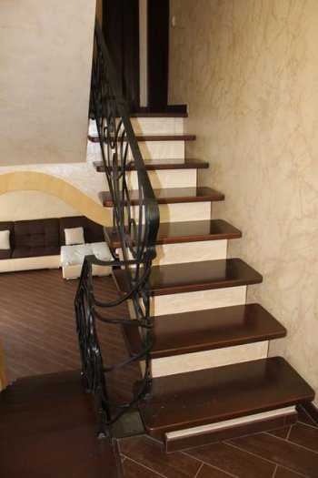 Материал для изготовления также является одним из критериев выбора. Дугообразную и винтовую проще сделать из металла, апрямые марши чаще изготавливают из дерева. В качестве отделочных материаловможно использовать совершенно разные материалы — от древесины ценных пород и ковки до натурального камня и стекла, очень часто их комбинируют. Например, тетивы производят из металла, а ступени — из дерева или толстого стекла.