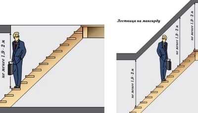 Замечено, что при высоте прохода, превышающей рост идущего по лестнице человека на 5 см, он инстинктивно будет пригибаться и втягивать голову. Потому нормой просвета признана высота от 1,9м до 2,0м. Высота прохода по всей протяженности лестницы должна быть равнозначной.