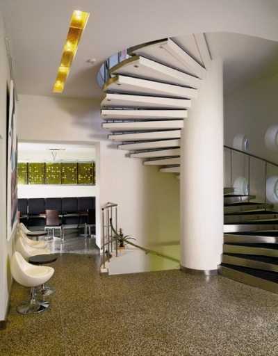 - винтовая лестница без сомнения станет чудесным решением для помещения небольшой площади, хотя в использовании она все-таки менее удобна, чем иные варианты, зато выглядит всегда очень эффектно.