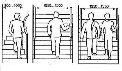Ширина лестницы должна обеспечивать свободный проход, не создавать дискомфорта и не внушать ощущение опасности