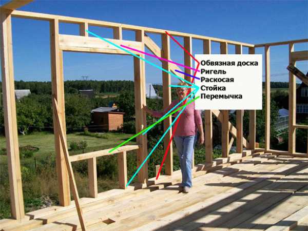 Кстати, отметки нужно делать не только на обвязочных досках, но и прибитых поверх них ригелях и перемычках (а иначе зачем они были бы там нужны?).