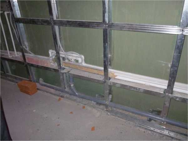 - разметка направления – к полу фиксируется направляющий элемент вплотную к облицовываемой стене (для экономии рабочего пространства) либо на заданном расстоянии (скрытная разводка коммуникаций, установка сдвижной двери, строительство ниши)