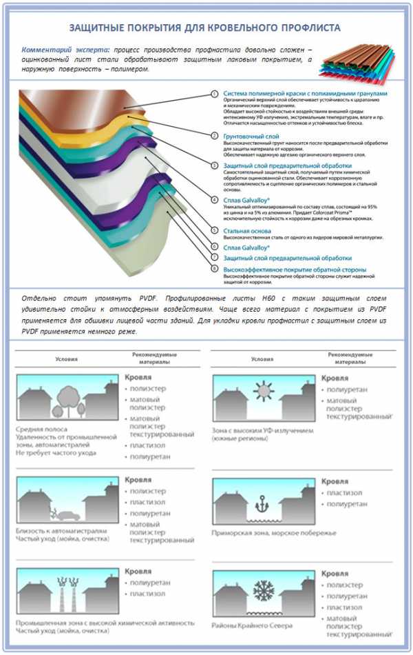 Наиболее часто для этих целей используется полиэстр, но применяются также покрытия из пурала и пластизола. Последние имеют значительно большую толщину и позволяют использовать профнастил в самых агрессивных средах.