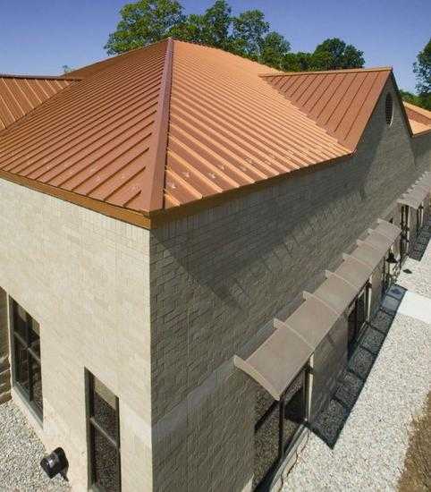 - кровельный материал можно подобрать по фактуре и цвету под дизайн здания,