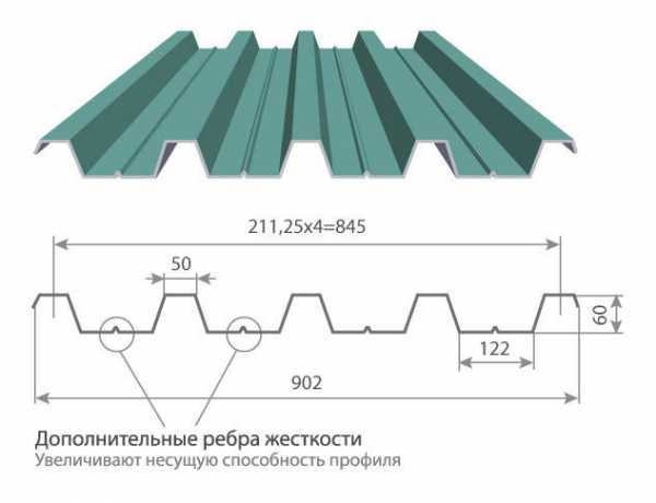 Такой вид материала применяется тогда, когда устанавливаются части зданий и сооружений, которые испытывают существенные нагрузки. Он отличается имеющимися на гофре бороздками, а также высотой профиля.