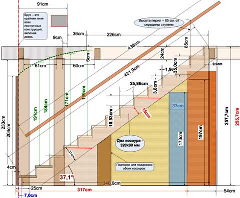 В результате программа обеспечит вас необходимым чертежом, где указаны все необходимые для изготовления лестницы размеры.