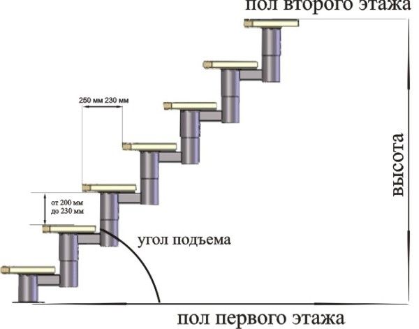 - просвет, который является расстоянием от поверхности ступеньки до преграды, расположенной над ней сверху, как правило, такой преградой может быть перекрытие верхнего этажа;