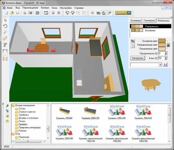 Установив приложение на свой компьютер можно за считанные минуты создать нужные помещения, расставить мебель, а затем настроить дизайн и просмотреть готовый результат в режиме 3D.