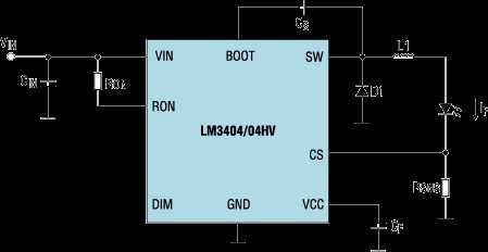 Рис. 1. Схема включения драйвера LM3404/04HV (аналогично для всей серии LM340x)