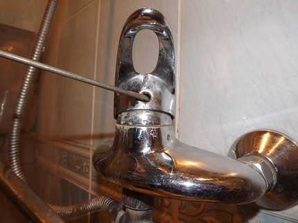 Перед тем как разобрать смеситель, необходимо перекрыть холодную и горячую воду перед ним. Винт, удерживающий поворотный рычаг смесителя, следует выкрутить. После этого рычаг снимают, прикладывая некоторое усилие и немного двигая его из стороны в сторону. После снятия рычага откроется резьбовая часть крана. Ее нужно открутить отверткой, слегка вращая по часовой стрелке. Не забывайте при этом о водопроводных шлангах, которые могут деформироваться при повороте устройства.