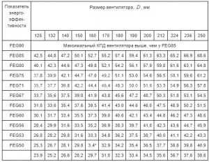 Во время классификации применяется показатель FEG, имеющий одинаковые значения для полной серии вентиляторов, сделанных по одной схеме и имеющих геометрическую подобность.