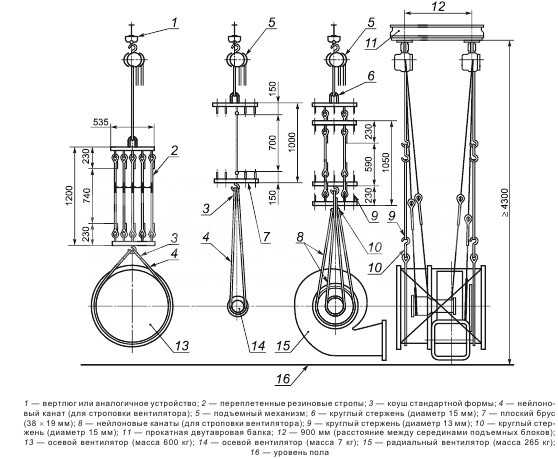 не должны деформироваться. Вентиляторы проходят испытания в нормальном рабочем положении. Если их может быть несколько, то проверяются все пространственные размещения. В некоторых случаях допускается размещение привода и вентилятора на одной металлической раме.