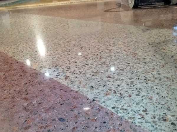 - Внешний вид. Степень блеска, придаваемая антипылевым соединением бетону, может быть различной. Максимальная величина обеспечивает насыщенный цвет.