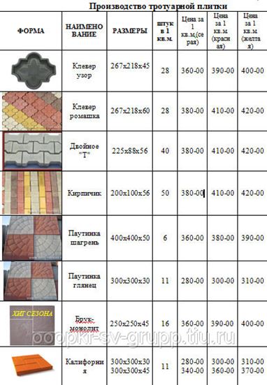 Расход смеси для укладки тротуарной плитки