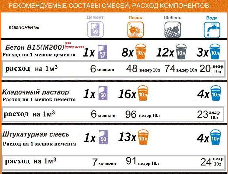 После этого определяют необходимую пропорцию каждого компонента в ведерном соотношении.