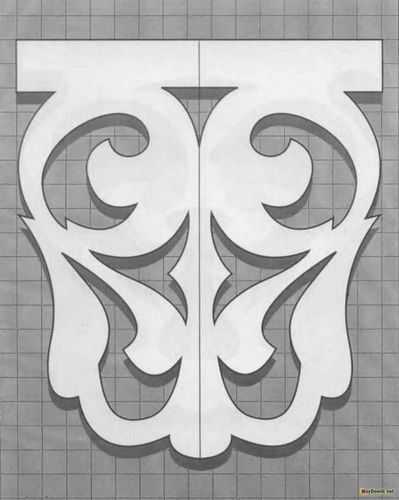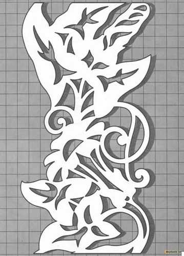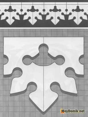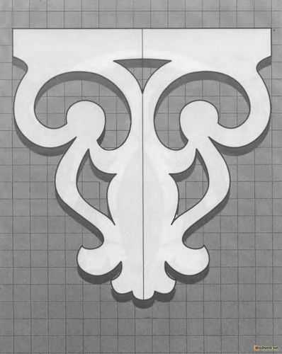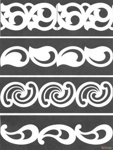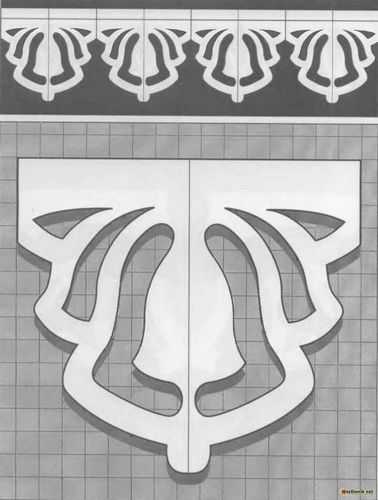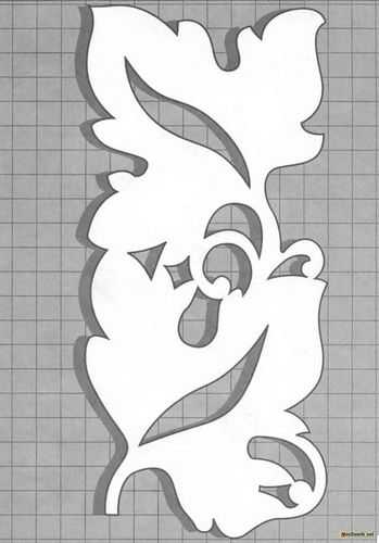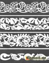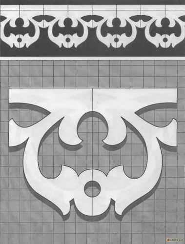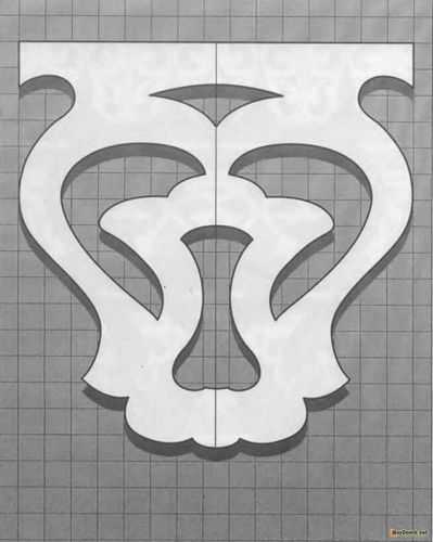 Чтобы сделать трафарет необходимо выполнить растягивание орнамента по длине. Для этого выбранный узор нужно нанести на бумагу с перенесением натуральной величины. В местах, где предполагается выполнение прорезей, нужно оставить соответствующую отметку с помощью выбранного цвета. Далее, узор следует наклеить на заготовку и с помощью дрели на изделие следует в нужных местах просверлить отверстия. Если в орнаменте присутствуют маленькие отверстия, их можно сделать, используя лобзик.