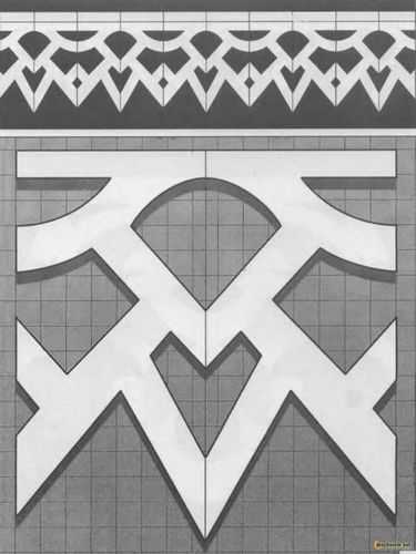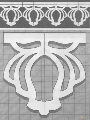 Выбранный орнамент копируется с помощью ксерокса с увеличением размера до требуемого. Можно использовать и принтер для распечатывания обработанного в фотошопе образца.