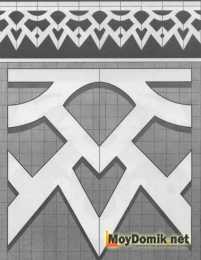 Боковые наличники – колонны, содержат основную декоративную нагрузку наличников. В своих узорах несут много символики. На них вырезаются животные, птицы, растения и цветы. Можно сделать трафарет с геометрическим рисунком.