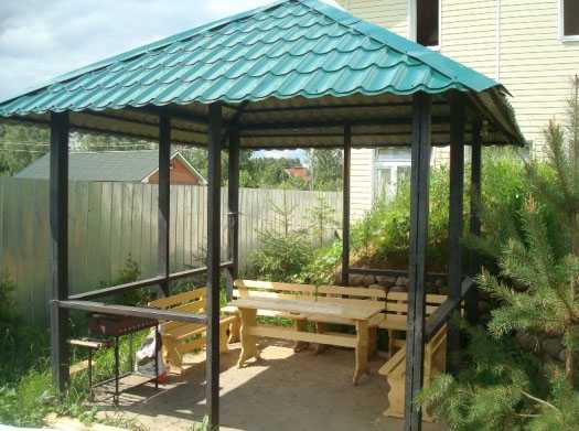 Фото: простая конструкция беседки из металлопрофиля