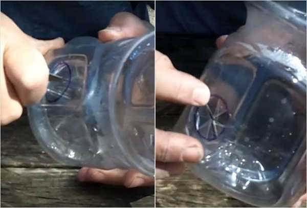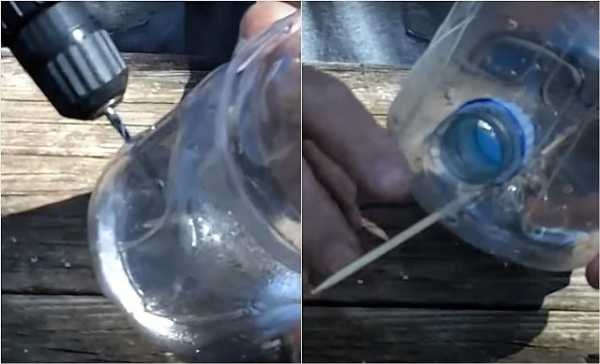 Вторая бутылка в самой узкой части у горлышка снабжается несколькими отверстиями, для того, чтобы из них потом смог высыпаться корм.