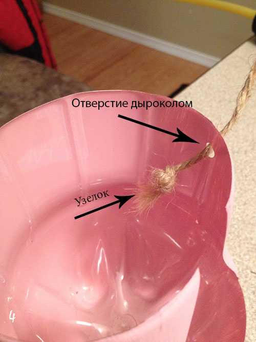 Прикрепить такую кормушку можно при помощи толстой веревки на ветку дерева.