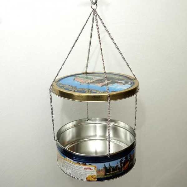 Кормушка готова, теперь внутрь можно насыпать корм и подвесить ее в удобном месте. Она нисколько не уступает по качеству изделию из дерева.