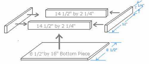 - Соединяем между собой бруски 4,5 *2 см, чтобы получился прямоугольник, и крепим его к днищу при помощи клея и саморезов.