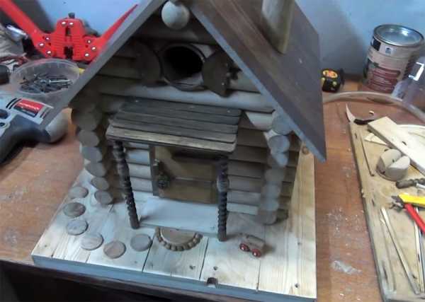 Для создания наиболее легкой модели нужно запастись брусом для стоек размером 4,5 *2 см, фанерой 25*25 для дна и двумя листами 35*22 для двускатной крыши, саморезами, гвоздями и столярным клеем.