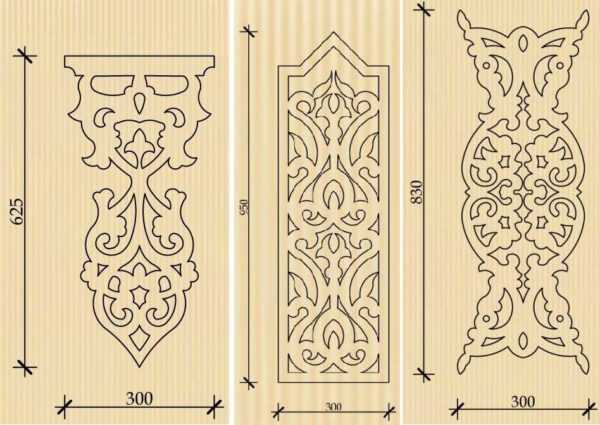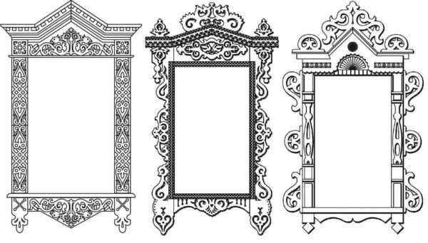 Если вы собрались делать деревянные наличники с резным узором, учтите, что дело это небыстрое и требующее «железного» терпения. Для создания резных наличников, помимо основных инструментов, вам понадобится набор специальных стамесок с разной формой лезвий и ручной лобзик. Чтобы было легче ориентироваться в большом выборе узоров, ниже приведём несколько шаблонов для вырезания: