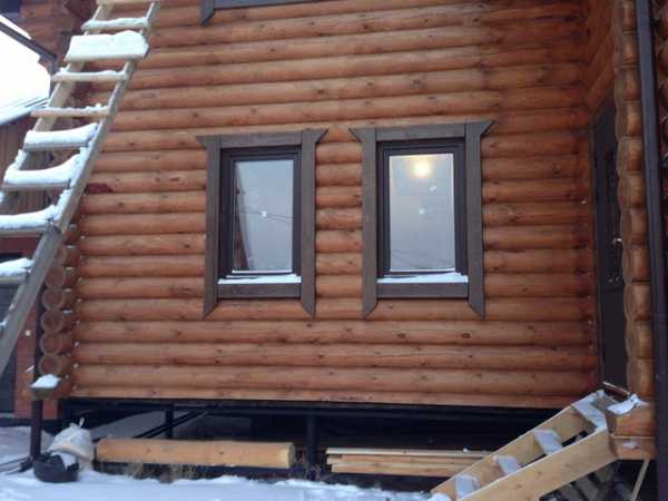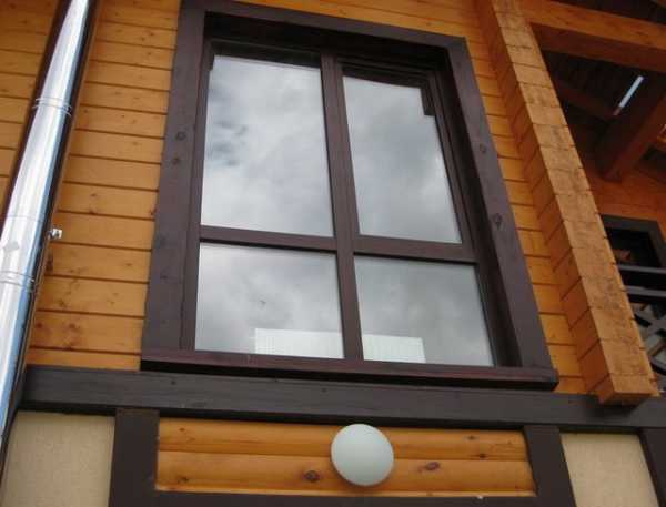 Используются деревянные наличники, как со стороны улицы, так и в помещении. Просто при установке применят разные защитные пропитки и красящие составы.