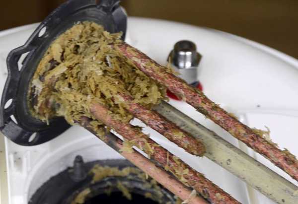 Оседающая на ТЭНе накипь, состоящая из солей магния, имеет меньшую карбонатную жесткость и отличается более рыхлой структурой. Удалить такой осадок можно механическим путем. Снижает ресурс электрода и корпуса бака не только накипь, но и взвешенные частицы, царапающие их поверхность. От этих рисков спасет установка фильтра грубой очистки.