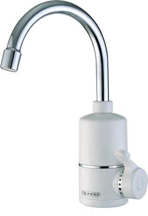 В этом приборе вода контактирует с источником тепла и нагревается. Мощность регулируется резистором, рычажок которого находится на корпусе изделия. Диапазон температур – от 40 до 70°С. Поскольку вода проточная, то степень её нагрева во многом определяется давлением потока.