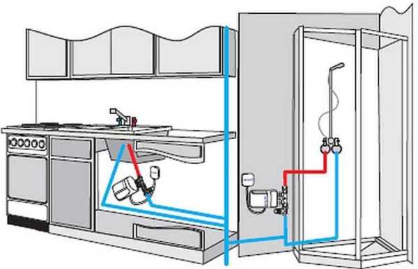 Правда, горячая вода будет подаваться только к одну потребителю: или в душ, или в кухню.