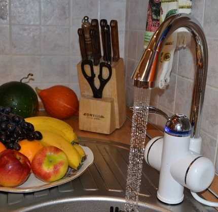 Существуют проточные водонагреватели, которые устанавливают прямо на мойку. В этом случае нет необходимости подводить к раковине отдельно трубы горячего водоснабжения