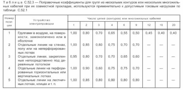 А вместе с пучками сразу нужно вспоминать про понижающий коэффициент. Нормативные документы ГОСТ Р50571.5.52-2011 таблица С.52.3 фактически обязывают устанавливать автоматические выключатели с заниженным номиналом при прокладке кабелей в пучках.