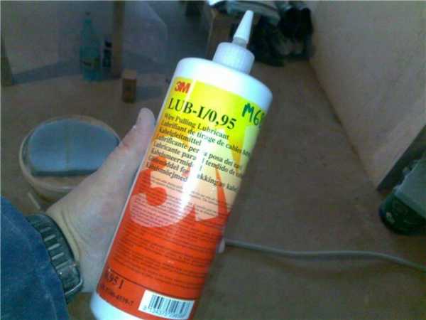 Ну и последняя ситуация, которую хотелось бы описать – прокладка кабеля с резиновой изоляцией в гофре. Сложность заключается в том, что при протяжке возникает сильное трение между стенками гофротрубы и изоляцией проводника. В результате даже проволока не облегчает процесс, а если еще и протяжки нет, в этом случае вообще нереально сложно выполнить монтаж. На помощь приходит специальная смазка, например Wire Pulling Lubricant от компании 3М, с помощью которой можно достаточно быстро протянуть кабель через гофрированную трубу. Стоимость такой смазки немного высокая, однако, если вы часто выполняете электромонтажные работы, рекомендуем приобрести ее, т.к. одной бутылки хватает надолго.